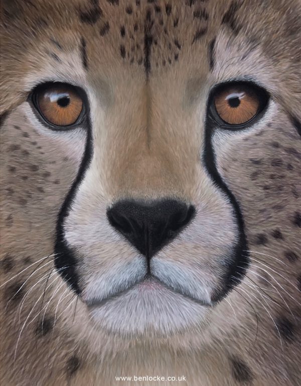 An original pastel drawing of a Cheetah. This drawing has been produced with soft pastels and pastel pencils on Clairfontaine Pastelmat paper. This is an original piece of work signed by the artist.